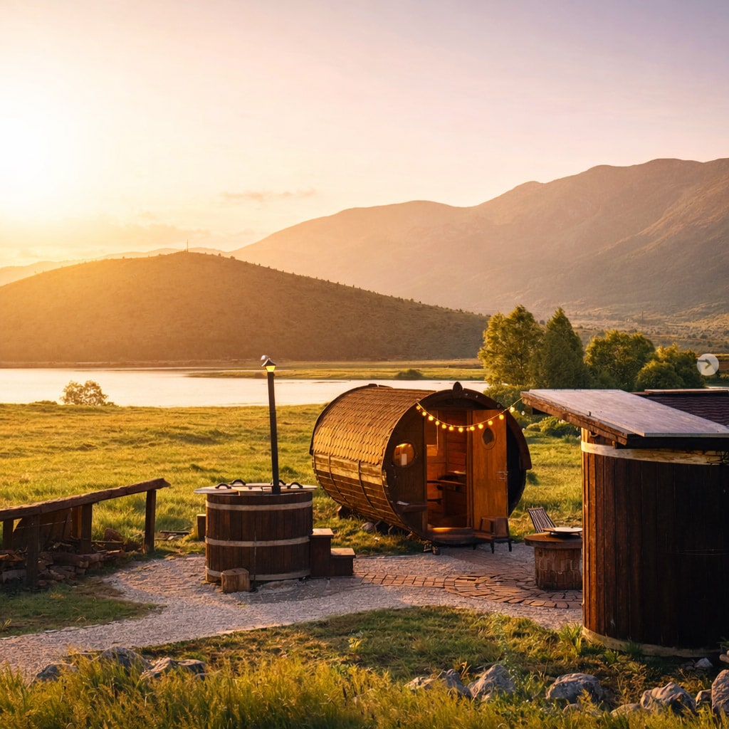 Bačva za spavanje sa drvenim jacuzziem