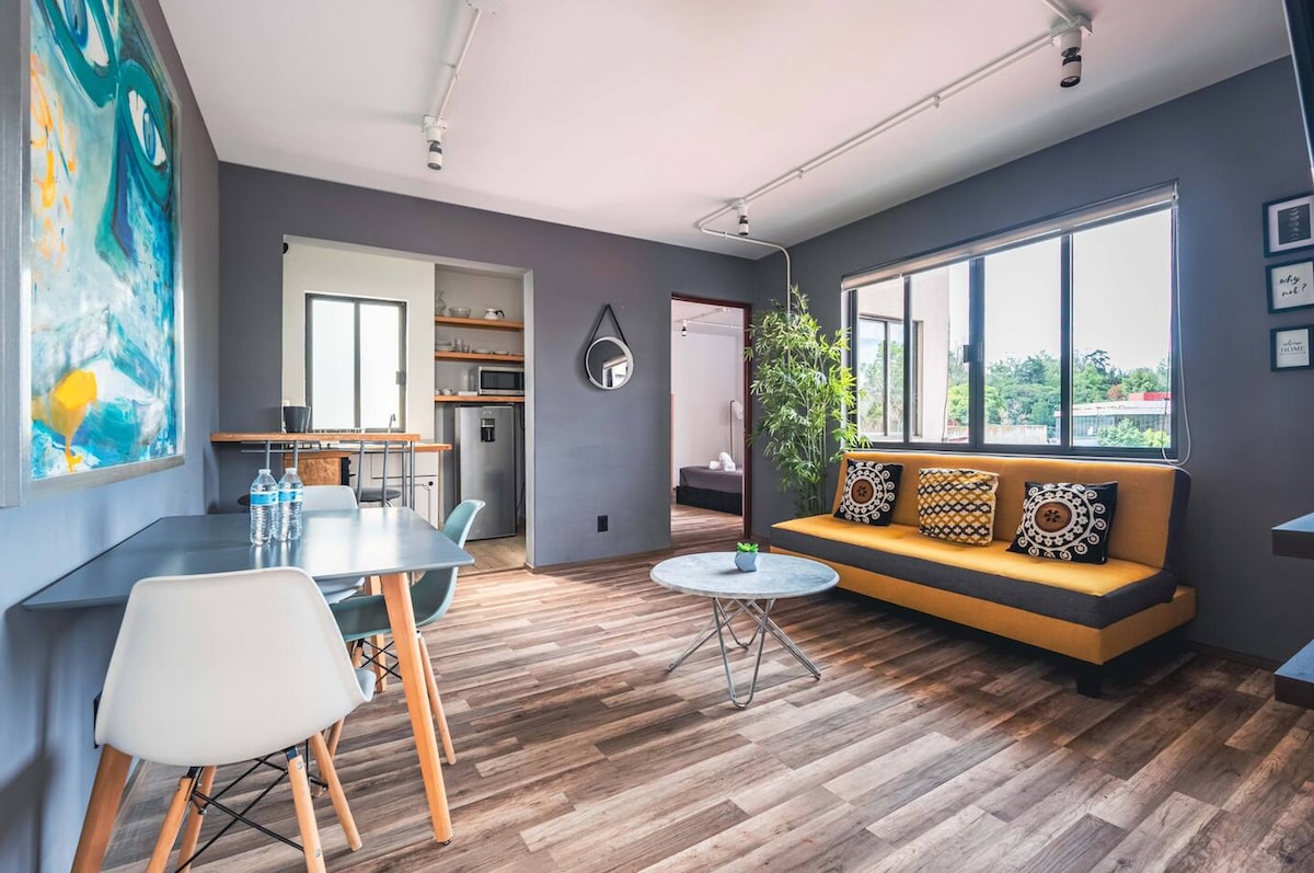 Bucură-te de experiența acestui apartament conceput pentru călătorii care caută un mediu confortabil în cartierul Condesa, la câteva străzi distanță de centrul cartierului, cu unele dintre cele mai căutate cafenele, restaurante și cluburi de noapte din oraș. Pentru evenimente culturale, artistice și de afaceri, este ușor de conectat la Bosque de Chapultepec, Polanco și coridoarele financiare ale Insurgentes, Reforma și Santa Fe.