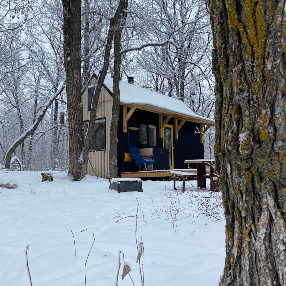 Situat în Parcul Provincial Turtle Mountain, cabanele noastre off-grid sunt o bază excelentă pentru aventurieri de toate vârstele și abilitățile pe tot parcursul anului. Cabanele noastre se împachetează mult în amprenta lor mică de 160 de metri pătrați. Acestea au un design modern, cu aragaz pe lemne, zonă de gătit, spațiu de luat masa și de dormit și rafturi de depozitare pentru echipamentul tău. În afara colibelor există un spațiu pe punte, zonă de gătit în aer liber și spațiu de depozitare a uneltelor pentru schiuri sau biciclete. Fiecare colibă are, de asemenea, propria latrină, masă de picnic și groapă de foc.