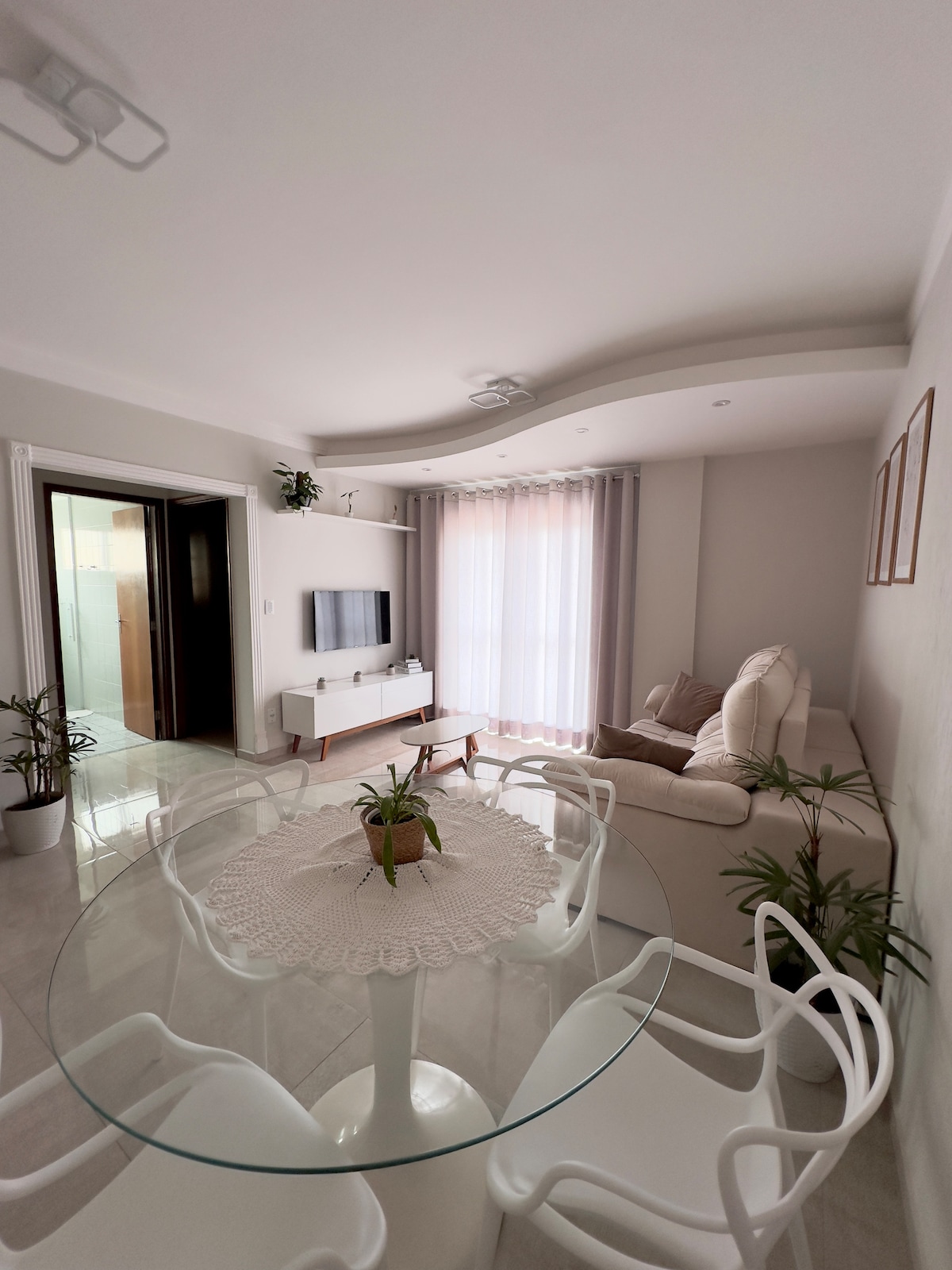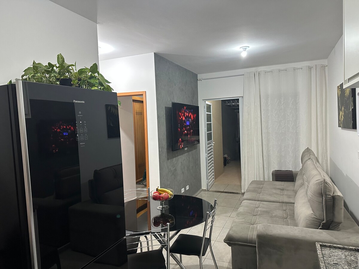 Aconchegante apê pentru până la 4 persoane cu: bucătărie integrată cu rufele, smart tv cu streaming, wi-Fi și garaj privat Băile sunt spațioase și au dușuri electrice și cutie de sticlă Zonele comune ale clădirii: Piscină mică, grătar și loc de joacă în aer liber Farmacii, baruri, restaurante, supermarket și magazin de animale de companie la doar cinci minute de mers pe jos Câteva distanțe: 4,1 km Catedrală 4,4 km centru 3,7 km Unesp Lageado 5,7 km Unesp Rubião