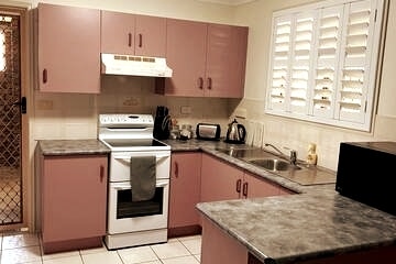 Aproape de spitale, școli de îmbarcare, TAFE, magazine și Grădinile Botanice, unitatea complet autonomă este o completare modernă la parter (cu intrare separată), la un Queenslander restaurat. Grădină tropicală minunată, cu acces privat la curtea cu frunze. Fie că ești în vacanță, afaceri sau rude în vizită, vei fi îngrijit de rezidenți pe termen lung, cu o mulțime de cunoștințe și conexiuni în comunitate. Locuința noastră este potrivită pentru cupluri, aventurieri solo, persoane care călătoresc în interes de afaceri și familii (cu copii).