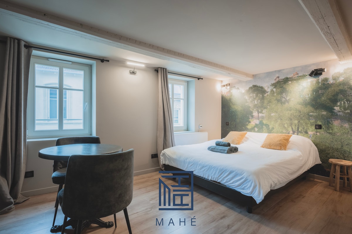 Design unic într-o configurație atipică flexibilă. Vino și descoperă acest mic loft superb de 30 m2 situat în inima centrului orașului, la o scurtă plimbare de Place Stanislas și în fața Rue Gourmande. Lasă-te sedus de decorul neo-retro scăldat în lumea călătoriilor, toate sub privirea unui Moto Guzzi din 1974. Clădirea este susținută de fortificații antice ale orașului Nancy, unde veți găsi în cameră fiecare piatră semnată de croitorul epocii.