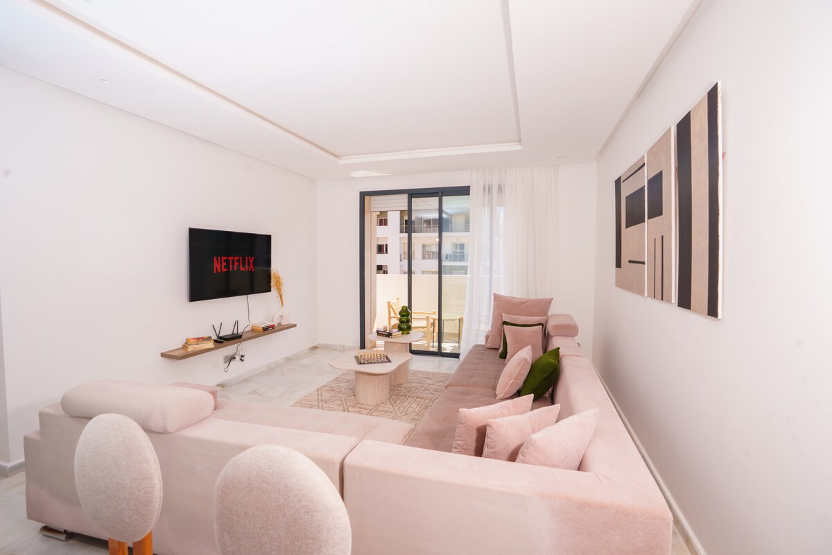 Welcome to our stunning 3BR apartment located in the heart of Hay Riad in Rabat! This luxurious and spacious property offers the ultimate in comfort and style, with two living rooms, a dining room, fireplace, three bathrooms, three bedrooms, and a fully equipped kitchen. The apartment features three spacious and beautifully decorated bedrooms. Our 3BR apartment in Hay Riad is the perfect choice for families, couples, and groups of friends looking for a luxurious and comfortable stay in Rabat.