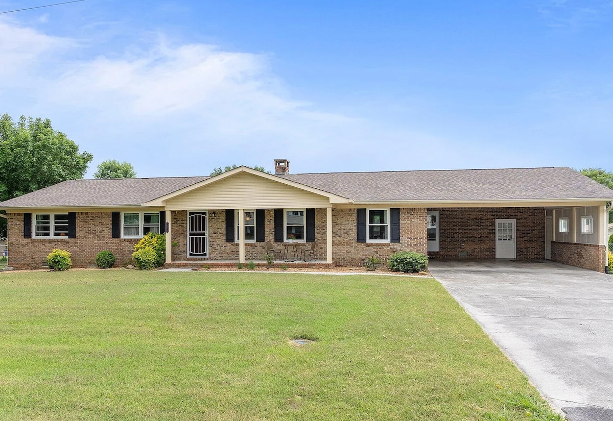 Vino să stai în inima Cleveland TN. Casă spațioasă pentru o singură familie. 4 dormitoare, 3 băi complete. La etaj sunt incluse, bucătărie cu blaturi din granit. Living, sufragerie, scaune 8. Șezlonguri 6. baie pe hol cu cadă. dormitor matrimonial cu, TV, pat matrimonial și baie cu duș. două dormitoare suplimentare cu paturi matrimoniale și paturi extensibile în fiecare dulap. La parter, cameră de familie mare cu TV inteligent. Baie nouă cu spălătorie și dormitor cu pat matrimonial. Împrejmuită în curtea din spate.