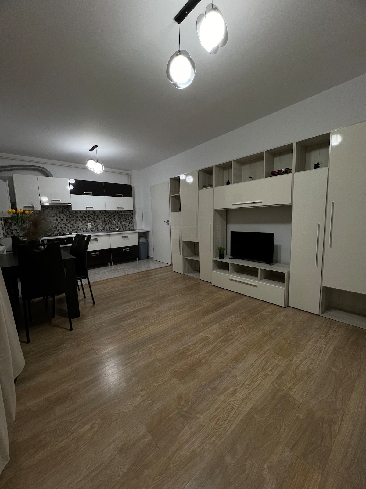 Apartamentul este amplasat într-un complex rezidențial aflat în apropierea mai multor spații comerciale precum : Mega Image , Profi , McDonald’s , Leroy Merlin , Jysk. Mijloc de transport in comun in apropierea complexului . Apartamentul dispune de un dormitor primitor cu pat matrimonial , living luminos cu bucătărie total utilată şi canapea extensibila și baie spațioasă. Imobilul oferă toate facilitățile necesare pentru a te simți ca acasă.