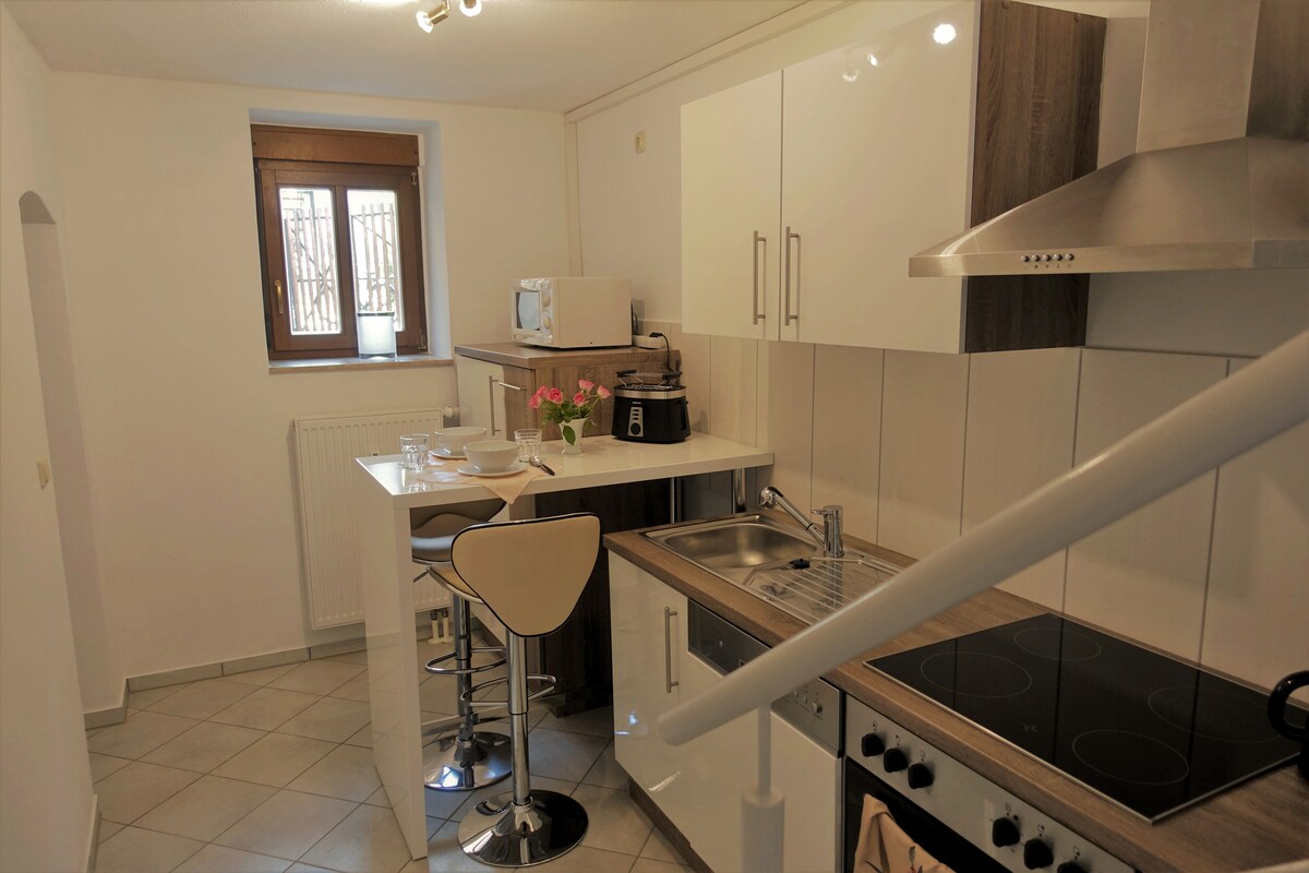 Apartamentul este în Ponitz, aproape de Renaissanceschloss Ponitz. Vei găsi un apartament de trei camere într-o moară istorică. Puteți utiliza pentru 2, 3 sau 4 persoane. În living există o galerie cu două paturi și, dacă este necesar, adăugăm un pat pentru trei persoane. La parter este un pat pentru a patra persoană. Pat pentru copii mai mici și mai mici este disponibil. Bucătăria este bine echipată, dar nu există cuptor (doar aragaz) și nici TV (dar WiFi). Vei găsi baie cu duș, uscător de păr și prosoape. Parcarea este disponibilă.
