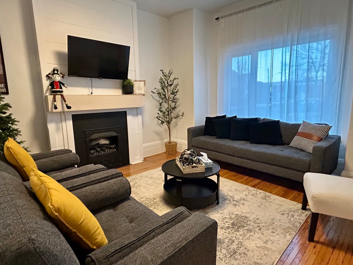 Apartament ușor, luminos, cu un dormitor, la nivelul inferior al casei mele. Tot ce ai nevoie pentru șederea ta, inclusiv lenjerie de pat, prosoape, șampon, gel de duș, veselă, tigăi, condimente de bază. Bucătăria are frigider de dimensiuni complete, aragaz și cuptor cu microunde. Spălătoria este lângă suită și este împărțită cu proprietarul *vă rugăm să rețineți - tavan mai mic de 6 ft într-o parte a dormitorului. Un apartament confortabil pentru șederea ta și situat central pentru acces facil în oraș.