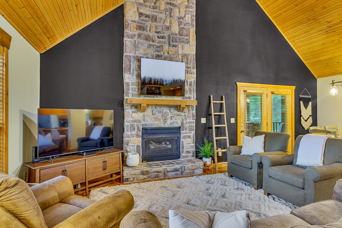 Bine ai venit la Cozy Cabin 90, situat în principala comunitate închisă de golf din Branson, Stonebridge Village. Dacă dorești să te relaxezi și să fii aproape de activitățile Branson, acesta este locul tău! Vei fi la doar câteva minute de Silver Dollar City și la o scurtă plimbare cu mașina până la Branson Strip și Branson Landing. Această cabană este perfect situată în apropierea piscinei, a locului de joacă și a lacului privat!