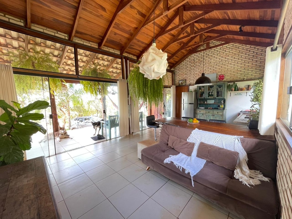 Casa rústica, suspensa. Localizada em condomínio fechado, com visual! Somos anfitriões residentes na propriedade. Oferecemos uma suíte privativa para os hóspedes e compartilhamos espaços comuns como cozinha, varanda, jardim. Além de nós também temos três pets. O Iron, pai da Céu (huskies siberianos) e um gato chamado Djoko. Situada no Jardim Botânico, fica a 5 km da Escola Sup. Defesa e a 10 km da Esplanada dos Ministérios, próxima à Ermida Dom Bosco, parque das copaíbas e Jardim Botânico Bsb.