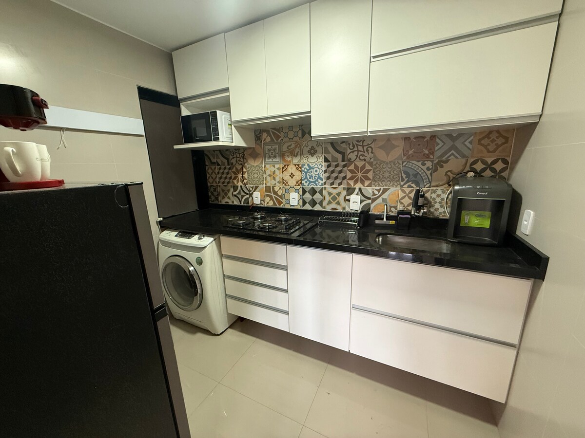 Apartament modern, recent renovat și bine decorat, situat în inima culturală și economică a capitalei, Asa Norte (SCLN 208). Echipat cu cele mai moderne și elegante dotări, acest apartament este ideal pentru cei care caută o ședere confortabilă și confortabilă în Brasilia. Simte-te ca acasă în capitala federală. - Locație privilegiată: aproape de restaurante, piețe, farmacii și la puțin peste 5 minute de centrul orașului. - Wi-Fi ultra-rapid. - Aer condiționat. - Portar deschis nonstop.
