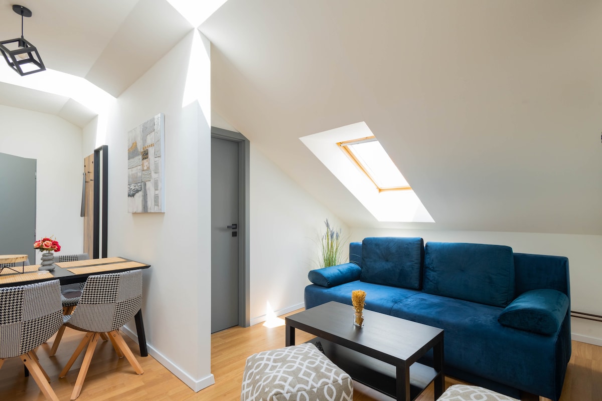 A romantic apartment that is only 180 meters from the Bratislava Castle, a symbol of the city and a beautiful historical landmark. A wonderful view of the entire city or the magical castle garden can be found just 2 minutes from the apartment. You can go down the streets or take the trolleybus to the center of the old town, which is a few minutes away. Within walking distance is the Presidential Palace, Cathedral of St. Martina, the bridge with the UFO. Several restaurants and cafes. Shop 400 m.