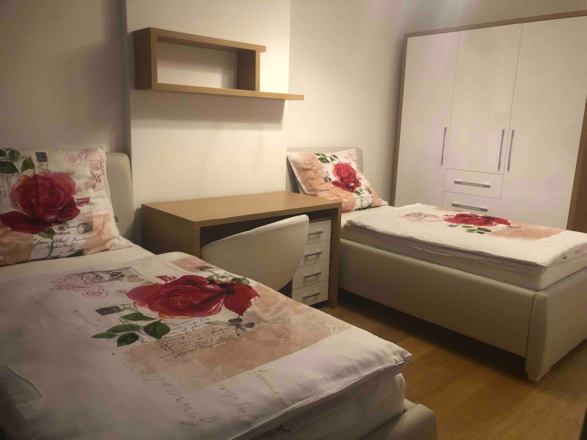 Perfect stay for 1 person in a private room in shared flat. 13 min to centre by direct bus 93 right in front of house, every 5-7min, also night. Free breakfast (Coffe&tea, Cereals/cornflakes, rice...I live and work in the flat, other room is my office. Free parking close to house (see the pics). -buy food in a small shop right in the house (6am-8pm) -cook in a fully equipped kitchen late check in must be agreed ahead, if possible - 2nd person possible by agreement, 10e/person/night extra