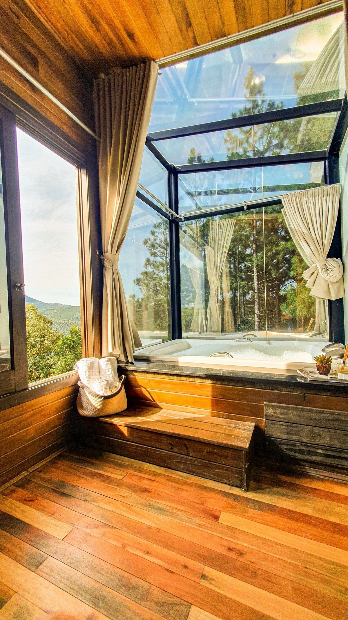 Descoperă farmecul Serra da Mantiqueira în această cabană concepută astfel încât să poți contempla răsăritul fără să te ridici din pat. Vino să te relaxezi în spa-ul nostru încălzit, privind stelele pe deasupra și în rețeaua de balansare. Cabana are o cameră integrată cu un pat matrimonial confortabil. În living/bucătărie, o saltea super confortabilă poate găzdui încă doi oaspeți, ceea ce face experiența ideală pentru familii. Proprietatea are, de asemenea, trasee și cascade mici.