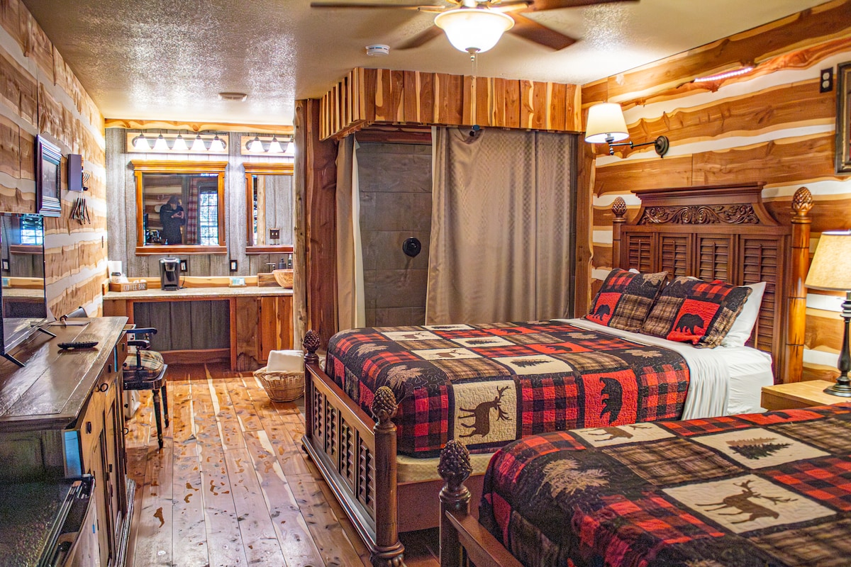 Rezervă TOATE cabanele și apartamentele noastre pentru întregul deal Hideaway! 3 cabane + 1 apartament care include 3 căzi cu hidromasaj/piscine cu stropi + trei gropi de foc + 1 perete de topoare și 2,5 acri de sălbăticie împădurită. Situat convenabil în apropiere de The Rim, La Cantera shopping și Six Flags, Hidden Hill are toate facilitățile orașului fără a fi în oraș.