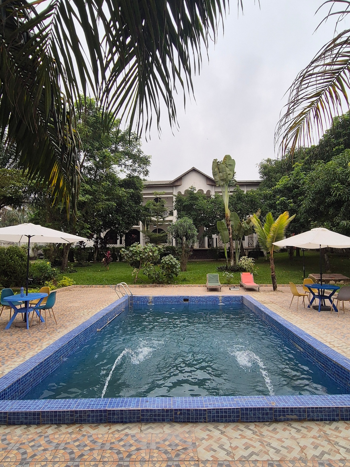Maison magnifiquement entretenue avec une grande chambre lit double et un bureau qui peut se transformer en une petite chambre enfant avec un lit une place. Un ilot de tranquillité en plein centre ville à Gombe avec Petite piscine et jardin, ainsi que une aide ménagère.