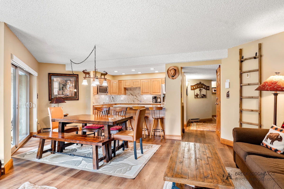 Acest apartament cu acces la pârtie, elegant și confortabil este unul dintre puținele locuri din Breckenridge unde îți poți aduce câinele. Este locul perfect pentru o escapadă unde poți renunța la mașină și te poți bucura de aer liber. Suntem la 30 de secunde de mers pe jos de autobuzul gratuit, la opt minute de mers pe jos de gondolă și la 7 minute de mers pe jos de oraș!