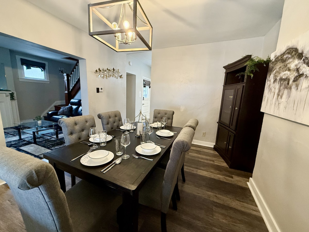 *Only Out of Town Bookings please * Cheerful and stylish 2 bedroom home only 15 minutes to downtown Pittsburgh! Located in a charming neighborhood within walking distance to shops, restaurants, places of worship, Mt. Lebanon golf course and a grocery store. The house is also only a 5 minute walk to the T line which makes it easy to get into and out of downtown Pittsburgh! ⦿ 1 king bed ⦿ 1 queen bed ⦿ Queen sized sleeper sofa ⦿ Smart TV ⦿ Air conditioning ⦿ Off-street parking ⦿ Smart lock