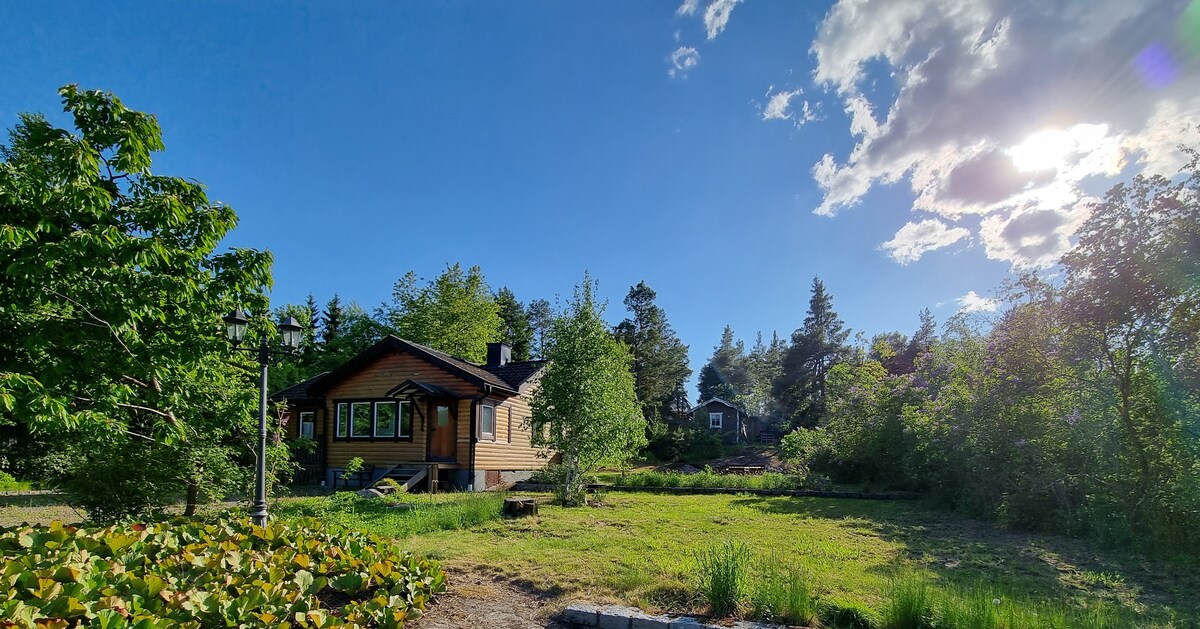 O căsuță fermecătoare construită în 1924, una dintre primele din Kolvik. Un loc liniștit cu teren forestier, animale sălbatice, priveliști spre mare de la ambele ferestre și terasă. Doc de înot și plajă mică la 300 de metri de casă. Durează 10 minute să mergi pe jos până la autobuzul care te duce în oraș în 30 de minute. Există, de asemenea, magazine alimentare și restaurante. Centrul comercial Mölnvik este situat la 10 minute distanță cu mașina/autobuzul. Bicicleta poate fi împrumutată pentru a pedala până la magazin. De asemenea, poți lua barca de navetă spre/dinspre oraș din Ålstäket, la 5 minute cu mașina.