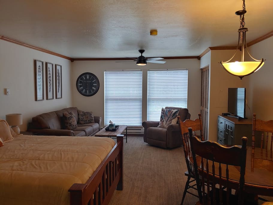 Îți urăm bun venit în apartamentul nostru studio RENOVAT! Situat la Cedar Breaks Lodge, care îți oferă cele mai bune facilități din oraș! Bucură-te de piscina încălzită, două căzi cu hidromasaj, saună, sală de gimnastică și sală de jocuri cu ping pong, piscină și foosball. Relaxează-te la spa-ul zilei, apoi mergi la restaurantul, barul sau magazinul de cadouri. Afară vei găsi un pavilion acoperit cu grătar și mese de picnic, un loc de joacă, un teren de baschet și potcoave. Vei avea acces la tot ceea ce oferă cabana pentru vizita ta la Brian Head.