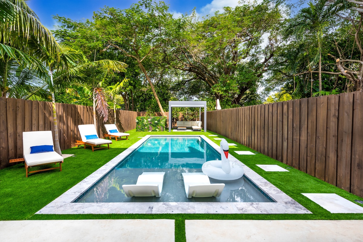 Discover your own private oasis at this centrally located retreat. Enjoy a stylish stay just minutes from everything Miami has to offer. Exclusive Amenities: During your stay, the pool, spa-style hot tub, fun mini golf, and outdoor grilling area are yours alone to enjoy. No sharing, complete privacy. Perfect Location: Only 7 minutes from the major cruise ship terminals (Virgin, Carnival, Royal Caribbean, Norwegian, and more). Easy Access: Just 10-15 minutes from Miami International Airport.