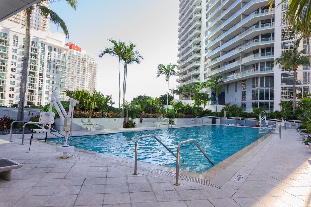 Unitate superbă cu un dormitor, cu vedere directă la golf și oraș. Amenajare spațioasă cu pardoseală modernizată și intrare în dulap. Distanță de mers pe jos până la Bayside, AAA, Muzeul Frost și PAMM. La câteva minute de Brickell, centrul orașului, Wynwood și SOBE Dotările includ piscine, sală de gimnastică, baie de aburi. Locuință fără fum, cu toate acestea, dacă fumezi, poți face acest lucru în balcon. Dacă dorești să te bucuri de timpul petrecut în Miami, acesta este locul potrivit. Toată lumea este binevenită. Trimite-mi un mesaj și hai să îți facem șederea în Miami cea mai bună.