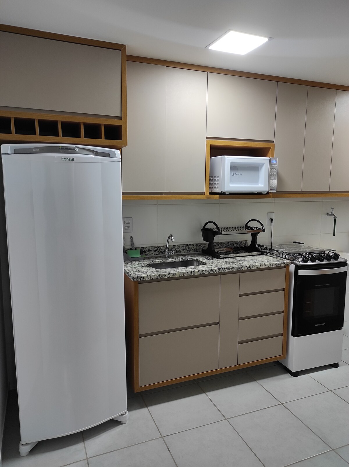 Acest apartament, aparținând familiei de peste 50 de ani, acum renovat, se îndrăgostește imediat de oricine. Înainte, muntele lui Hristos Răscumpărătorul, cu biomeu predominant al pădurii atlantice; dedesubt, Băile Antônio Carlos, cu apele sale care au puterea vindecării și grădinile impunătoare ale pieței centrale. De la fereastra camerei, mișcarea orașului este observată. Cafenelele, restaurantele, brutăriile, supermarketurile, parcarea și diverse magazine pot fi frecventate pe jos.