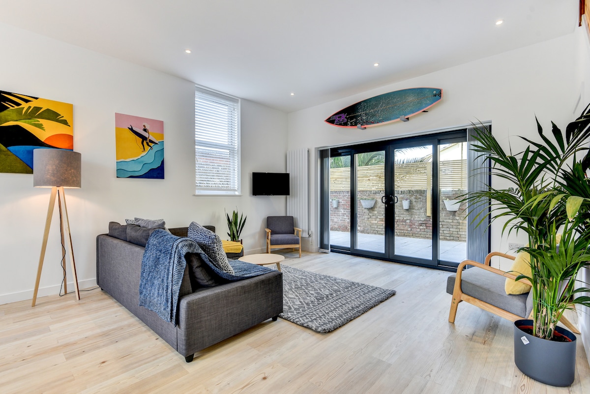 Worthing este cel mai însorit loc din Marea Britanie, iar acest apartament este situat la doar câteva minute de mers pe jos de plajă. Parcare gratuită, decorat elegant, situat central, dar într-un colț liniștit al orașului, acest apartament frumos cu 2 dormitoare, orientat spre sud, are vedere la o grădină liniștită, cu palmieri (nu este accesibilă). Recent renovat cu aragaz pe lemne, WiFi cu fibră optică completă, lenjerie de pat și cafetieră Nespresso. (Fără petreceri mari. „Locuință liniștită”, deoarece apartamentul se află în interiorul unei case. Copiii sunt bineveniți).