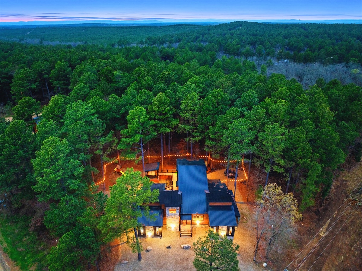 Evadează la Starry Escape, o cabană de lux cuibărită în pini, cu priveliști uimitoare. ☀️ Înfășurare spațioasă înjurul punții cu vedere liniștită la pădure Grătar exterior 🍖 încorporat Cadă cu hidromasaj ♨️ relaxantă, cuibărită printre copaci Șemineu 🔥 confortabil în aer liber și vatră perfectă pentru adunare 📍 3 minute cu mașina până la magazinele și restaurantele locale ✭ „O ședere excelentă pentru familii. O mulțime de spațiu pentru copii și dimineți liniștite urmărind căprioare cu o ceașcă de cafea...”