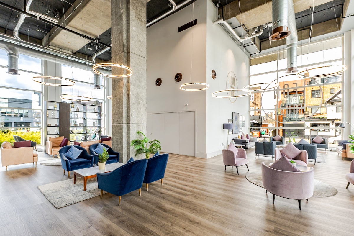 Welcome to our Brand New, Stylish-themed studio in a building with Lift. Enjoy modern furnishings, a fully equipped kitchen with a washing machine and dishwasher, a spacious bathroom with shower, a cosy bedroom area, and a private balcony. Free access to the shared GYM and WORKSPACE. Take advantage of free parking, super-fast WiFi throughout, and a smart TV. It is just minutes from Orpington station, with easy access to London. POTENTIAL FOR NOISE, READ BELOW.