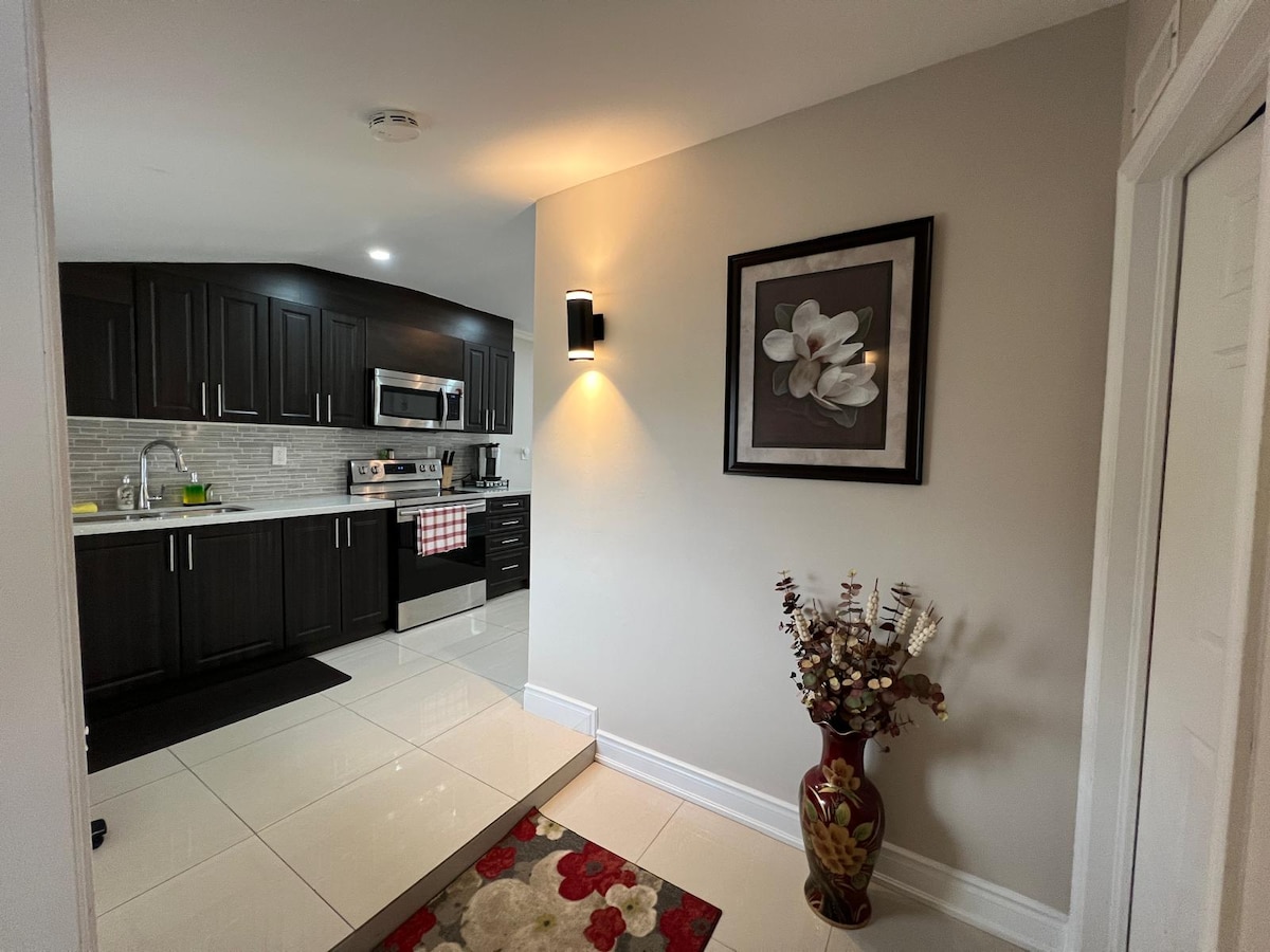 Bine ai venit în apartamentul tău confortabil de la subsol din Oakville! Recent construit, acest apartament cu 2 dormitoare are un living cu concept deschis, care se varsă în bucătăria complet echipată, oferind un spațiu confortabil pentru relaxare, împreună cu zona curții din spate. Oaspeții au acces privat printr-o intrare separată și o zonă de lucru independentă. Cu fața la iaz, situat într-un cartier liniștit, în imediata apropiere a restaurantelor și magazinelor alimentare. La 10-15 minute de stația Oakville GO. 25-30 de minute de aeroportul YYZ.