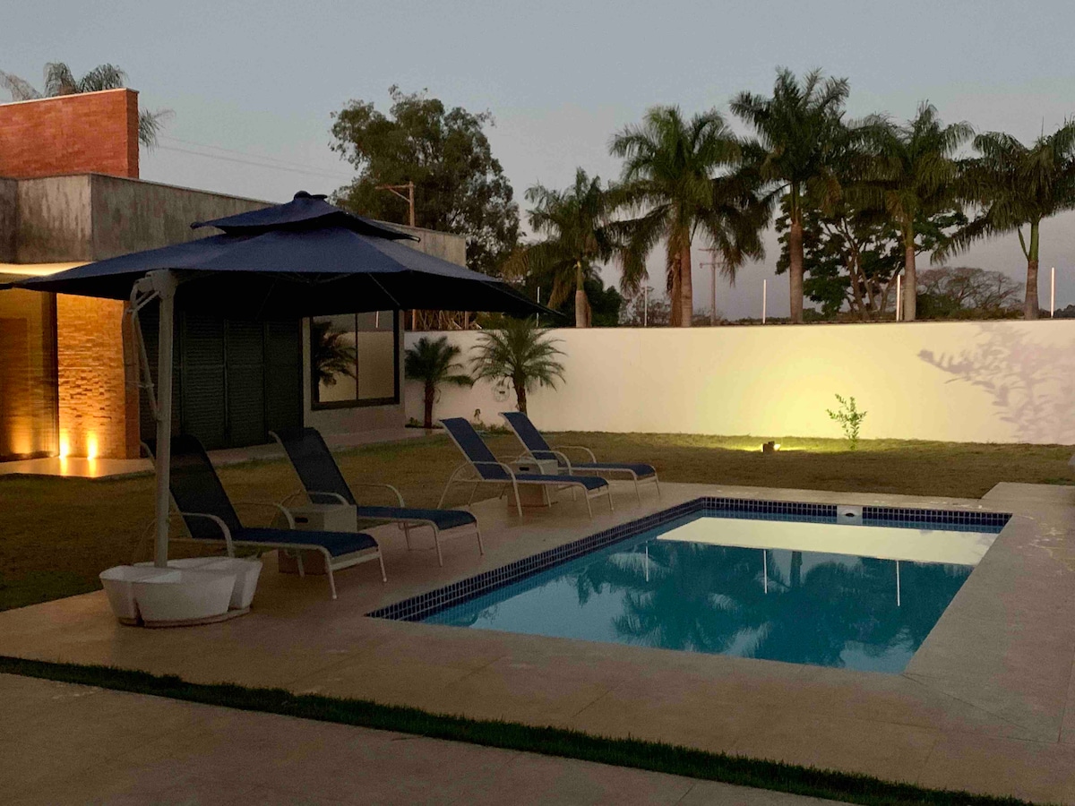 Casă contemporană, nouă, minunată și super confortabilă, într-un loc liniștit și liniștit, unde poți auzi cântecul păsărilor. Lângă râul Jacaré Pepira și la aproximativ 700 m de Parque dos Saltos. Piscină cu trepte de relaxare, zonă gourmet cu șemineu, grătar, cuptor cu lemne, aragaz industrial cu vedere la vale. Șemineu interior în sufragerie. Bucătărie integrată cu sufragerie și cameră de zi. Trei apartamente, garaj pentru trei mașini.
