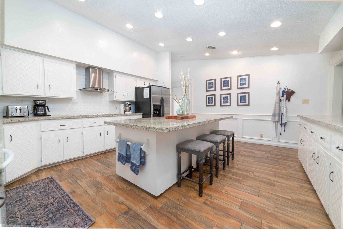 Bienvenido a la casa de la relajacion, ceea ce înseamnă bun venit în casă pentru relaxare în spaniolă. Bucură-te de această casă mare, deschisă, de 5200 mp, din Harlingen, Texas, cu piscină privată încălzită de 8 picioare adâncime. Casa are 4 dormitoare și 3,5 băi și doarme 16 foarte frumos. Bucură-te de designul nautic costal, cu 3 livinguri mari și sufragerie formală, o masă de biliard, o masă de poker, o sală de media, o sală de gimnastică și o curte privată în spate. Casă la numai 45 de minute de insula South Padre.