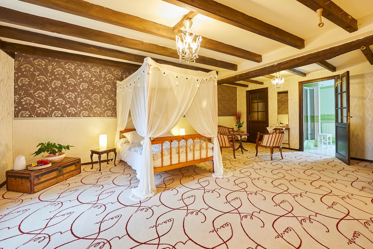 Garsonieră în parc cu copaci + saună și jacuzzi