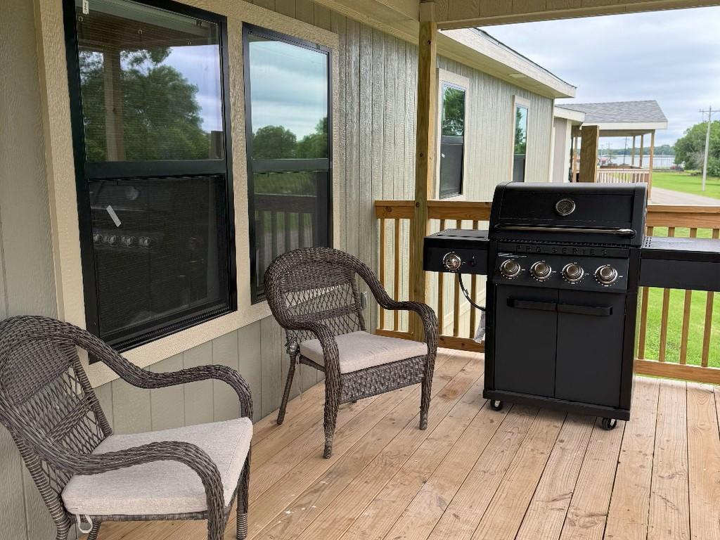 Barndominium mare și luxos într-un cadru frumos de țară, chiar în afara limitelor orașului. Acest spațiu de 2.400 mp este un concept deschis, cu bucătărie completă, o baie completă, living, masă, mașină de spălat/uscător automat de rufe, masă de ping-pong și mansardă de dormit. Mansarda are două paturi supraetajate de o persoană și două dormitoare private matrimoniale de o parte și de alta. Această proprietate este împărțită cu alte două unități închiriabile Airbnb, cu un iaz privat mare mai jos, cu doc comun. Petrecerile de peste 10 oaspeți nu sunt permiși.