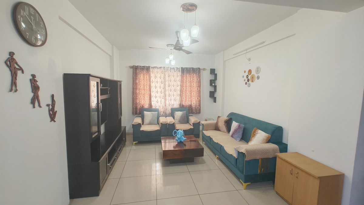 Un apartament spațios cu 3 dormitoare, cu o grădină cu terasă la etajul 11, situat convenabil la intersecția dintre Sarjapur Rd și Outer Ring Road, în același campus cu Double Tree Hilton și spitalul Manipal cu facilități de curățenie de zi cu zi. Perfect pentru o familie care se mută în Bangalore, familii care caută tratament medical la Manipal, profesioniști care călătoresc în interes de serviciu sau turiști indieni/internaționali care caută o vacanță relaxată.