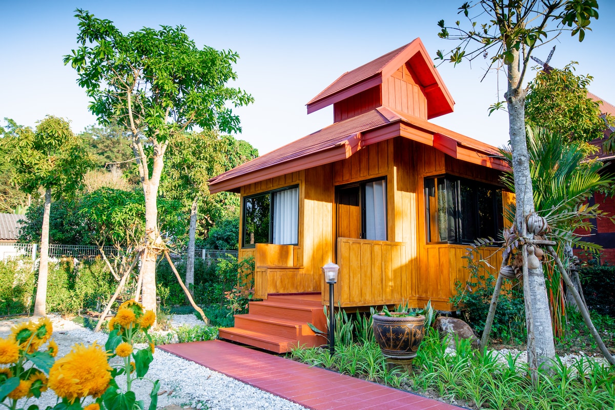 Această fermă ecologică cu vedere liniștită la lac și munte, lângă Muzeul Ban Dam, la numai 10 minute de aeroport, este perfectă pentru călătorii private și de grup. Casă privată din sticlă în stil nordic, în zona naturală ascunsă, chiar vizavi de Poarta 4 Chaing Rai Rajabhat University (CRRU). Acces foarte facil de oriunde!