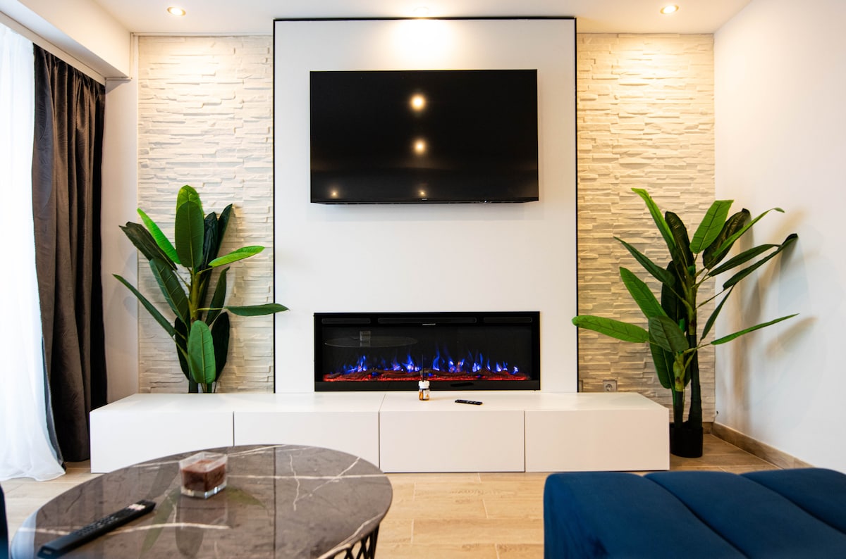 🌆 Skyline terrace + cozy fireplace in the heart of Bucharest. Modern studio in a new complex, ~10 min walk to Piața Unirii & Old Town—great for couples or remote workers. Highlights: • private terrace with skyline view • fireplace • dedicated workspace + fast Wi-Fi • fully equipped kitchen, dishwasher + washer • self check-in (lockbox) • calm area • free street parking nearby. Close to fountains, Palace of Parliament & Tineretului/Carol parks. Extras on request: monitor/flowers/cake