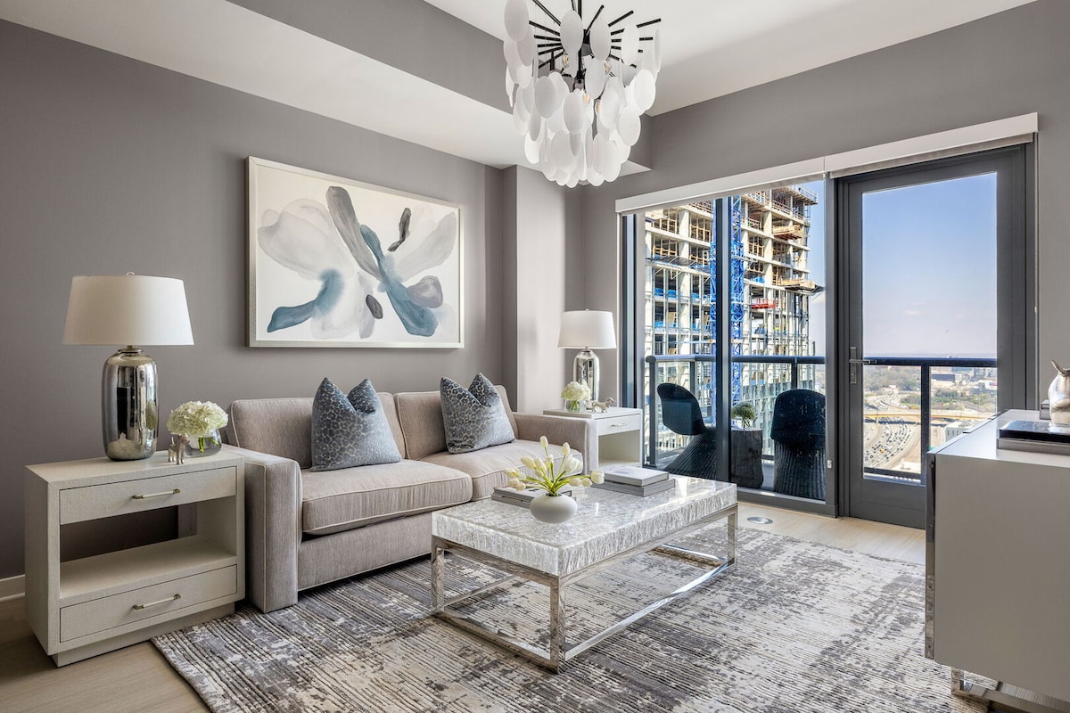 Welcome to Midtow Mystique by ALR. This one-bedroom 880 sq ft.haven is located on the 25th floor in the heart of Midtown. This space boasts sophistication, a greyscale aesthetic, custom furnishings, sweeping views of the city and so much more! The waterfall island, custom chandelier, fully equipped kitchen and top-of-the-line appliances are meet with a living space that exudes timeless charm, where luxury intertwines with allure. Parking $24/day Pets $150 Age 25+