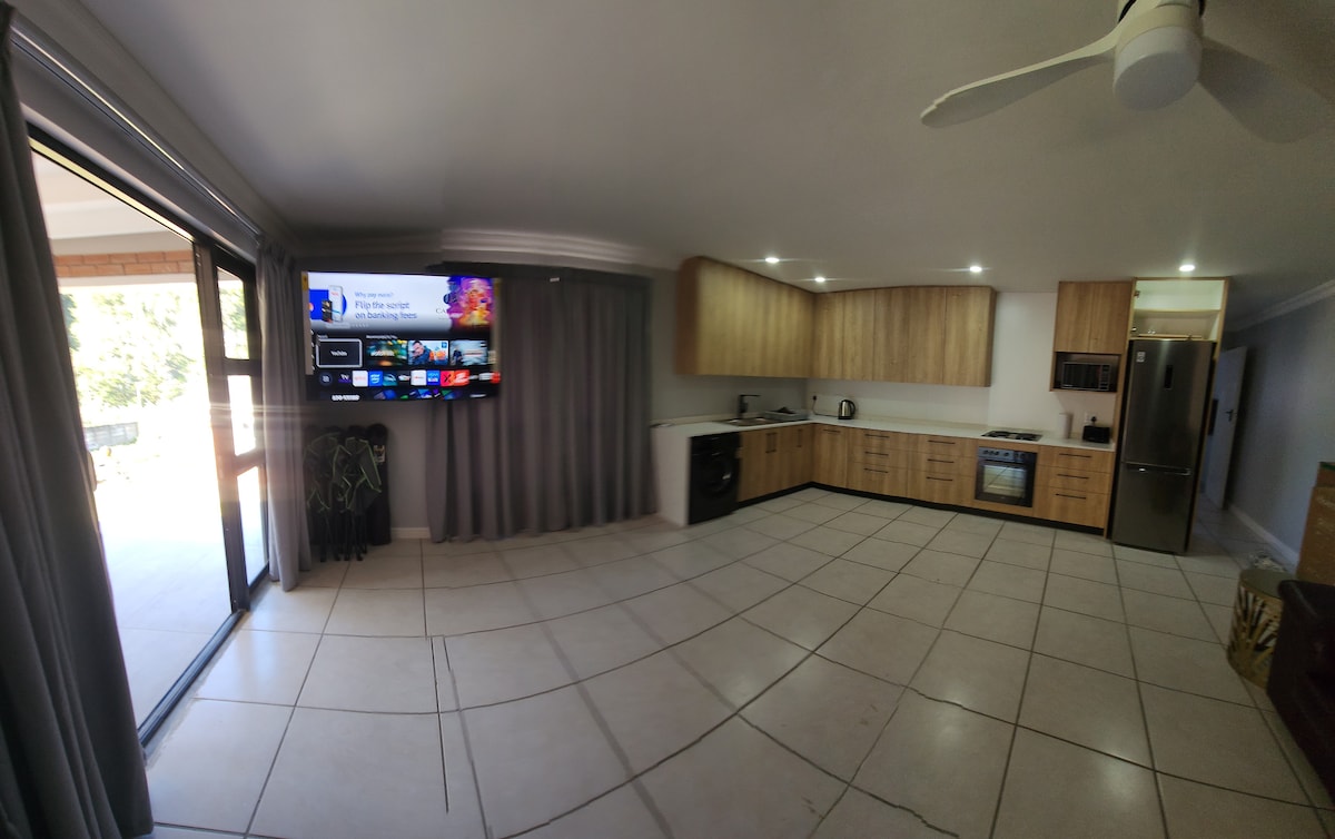 Acest nou studio de oaspeți de lux este gata să te răsfețe. Are o chicinetă complet utilată pentru a permite self-catering, inclusiv o zonă privată braai. O baie minunată cu apă caldă excelentă. Oaspeții se pot bucura de o baie în piscină și de plimbări zilnice de-a lungul râului prin calea publică de peste drum. Vino și bucură-te de pescuit, canotaj, observarea păsărilor și ciclism. La câțiva kilometri de plaja principală și de locurile locale de surf. Lângă magazine și mall-uri mari