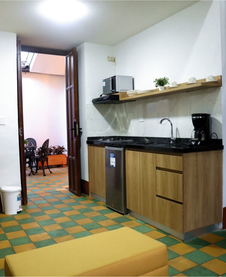 Apartamentele noastre sunt situate în munții tropicali din Munții Centrali din Columbia, la 1.600 de metri deasupra nivelului mării și la doar o oră și jumătate distanță de orașul Cali. Auen Posada Andina este un loc unde te poți cufunda în liniște, odihnă și conectare cu frumusețea naturii. Apartamentul are două niveluri, trei paturi potrivite pentru cinci persoane, terasă privată cu vedere la vale și finisaje fine care transmit un sentiment de confort și farmec minimalist.