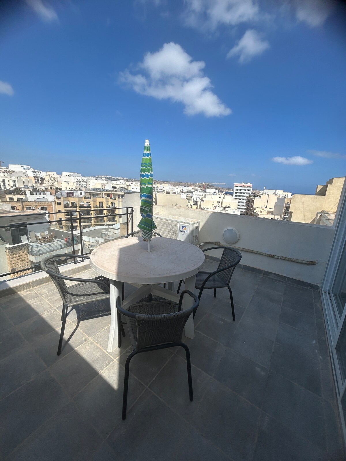 Scufundă-te în lux în această escapadă la malul mării de la etajul 6 din Malta. Relaxează-te pe terasa din față în timp ce te relaxezi în priveliștile îndepărtate. Cazarea complet privată are 2 dormitoare duble spațioase, 1 baie privată, mobilate cu saltele ortopedice premium pentru confort maxim. Răsfață-te cu dotări de top, inclusiv Wi-Fi super-rapid, 3 unități AC, 3 Echo Dots for Home Automation și Amazon Music Unlimited. Bucură-te de o odihnă binemeritată în acest refugiu exclusivist într-unul dintre cele mai bune locuri turistice din Malta.