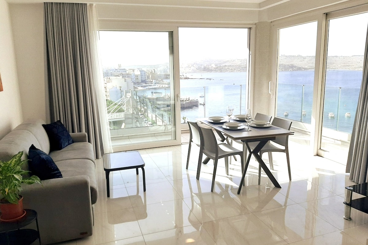 Breath taking views living on the water’s edge. A beautiful, light apartment - modern and stylish. Luxury feel and thoughtful touches. Magnificent, unobstructed Mediterranean views. Hear the waves and feel the sea breezes in a secluded bubble of St. Paul’s Bay. Swimming at your doorstep. Cafes, convenience stores and an Loa, Michelin Guide -restaurant within 2 minutes’ walk. Cafe del Mar in 30. Easy access to St. Julian’s, Sliema, Mdina, Valletta and the beaches. Not on the tourist strip!