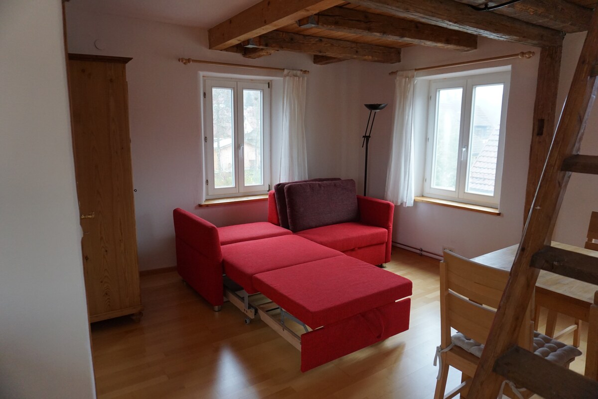 Bine ai venit la gara Großaltdorf! Cazarea noastră include un apartament complet la mansardă la etajul 2, cu 5 paturi și spațiu pentru până la 8 oaspeți (+ pat pentru copii în funcție de aranjament). În plus, există posibilitatea să te simți confortabil în grădină și să faci grătar. În cazarea noastră simți nu numai iubitorii de cale ferată, ci și animale de companie:)