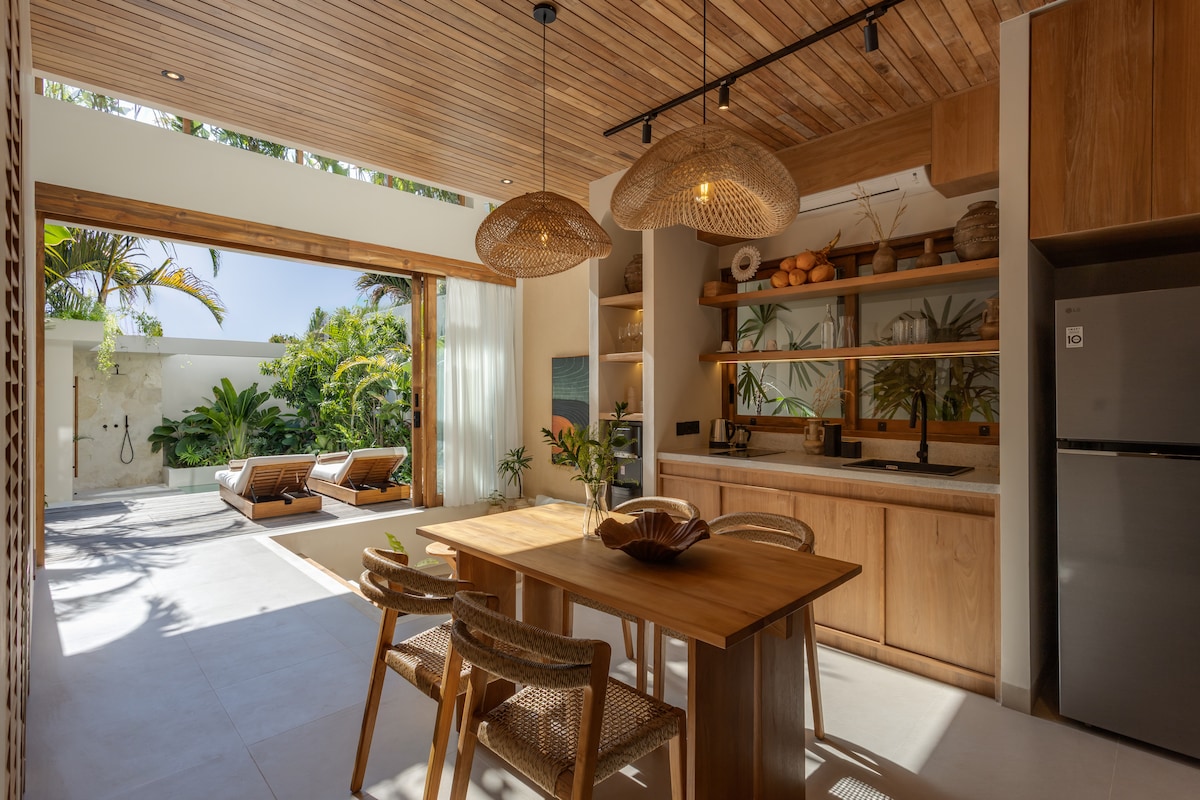 Private designer villa in Bingin with pool — perfect for couples and special stays. A warm, beautifully designed space that feels like home while offering a unique Bali experience. Open living flows into your private garden and pool—perfect for long mornings, sunset dips and relaxed evenings. Great for romantic getaways with full privacy. Professionally maintained with great attention to detail. King-size bed, Wi-Fi, Smart TV and parking included. Close to Bingin Beach, top cafes & restaurants