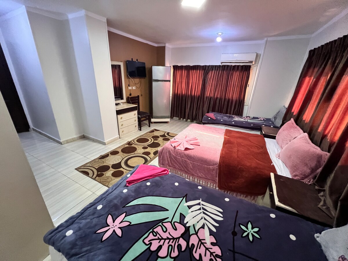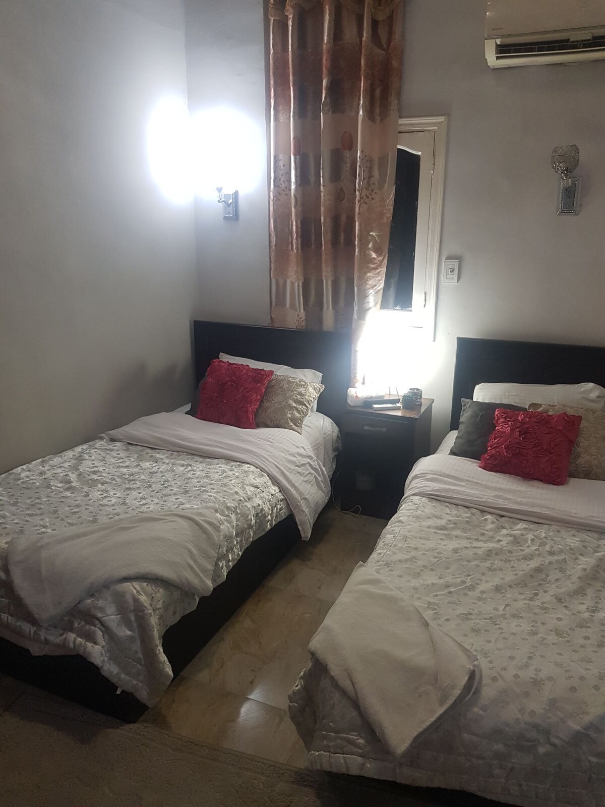 Bucură-te de o ședere confortabilă în această cameră twin bine amenajată, situată în Cairo. Camera are două paturi de o persoană confortabile, lenjerie de pat curată, aer condiționat și Wi-Fi gratuit, fiind ideală pentru prieteni, colegi sau călători care împart un spațiu. Concepută pentru confort și comoditate, camera oferă o atmosferă relaxantă după o zi aglomerată de explorare a orașului.