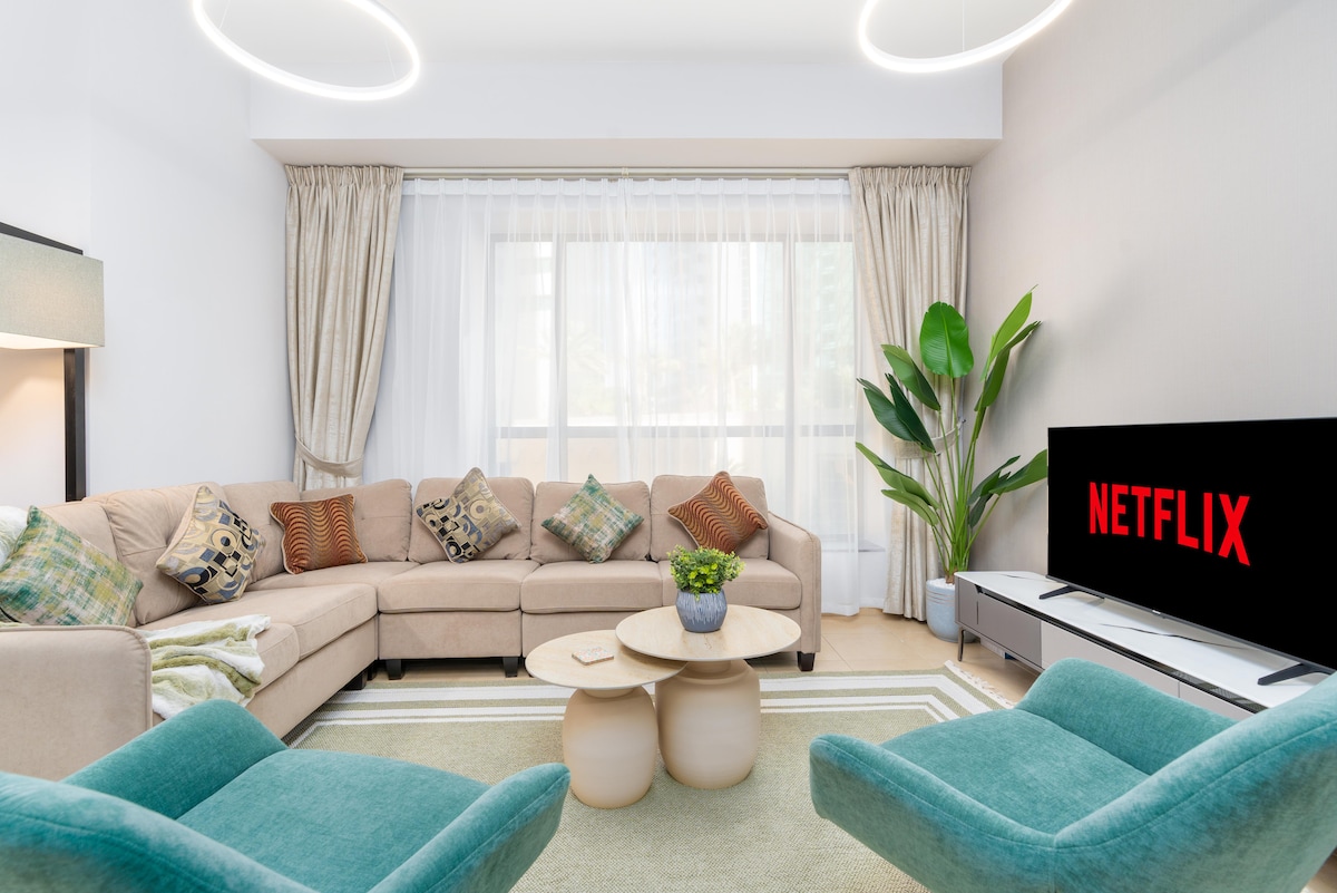 🏖️ Prime JBR Location — Minutes from the Beach, Marina & Sky Dive 🛏️ Spacious 5-Bedroom Apartment — Sleeps up to 16 Guests 🛠️ Newly Renovated Luxury Apartment 🍳 Fully Equipped Kitchen 🌃 Walk to Dubai’s Finest Dining, Cafés, Bars & Nightlife 🌊 Steps to Water Sports & Marina Activities 🚶♂️ Walk to Bluewaters Island 🚇 Close to Metro, Tram & Malls 🏊♀️ Access to Multiple Pools in Sadaf Cluster 🏋️♂️ Modern Fitness Facilities 💻 Work Desk + Fast Wi-Fi 👶 Baby Cot & High Chair Available