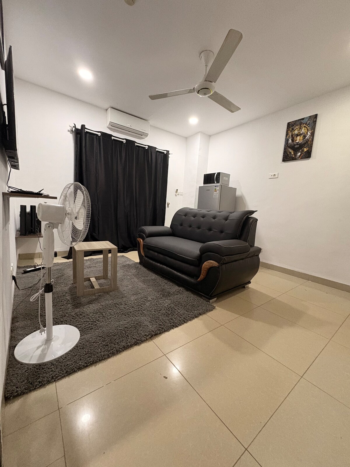 Bucură-te de un apartament modern cu un dormitor, cu living, situat convenabil în centrul orașului Ouagadougou. Reședință complet securizată cu parcare privată, Wi-Fi de mare viteză, apă caldă, aer condiționat și bucătărie utilată. Spațios, curat și confortabil, perfect pentru șederi de afaceri sau în cuplu. Locație strategică aproape de magazine și restaurante. Rezervă acum și bucură-te de un sejur confortabil în inima orașului.