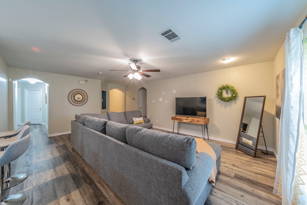 BINE AI VENIT în casa ta departe de casă! Această locuință cu 4 dormitoare are suficient spațiu pentru a te întinde și a te odihni, a te relaxa și a te juca în orice moment al anului. Casa este luminoasă și luminoasă, imaculată, are un decor texan modern și se mândrește cu o mulțime de facilități atât în interior, cât și în exterior, confortabile pentru o ședere prelungită cu prietenii sau familia sau acea escapadă perfectă de weekend. Casa ta departe de casă te așteaptă! Rezervă-ți șederea astăzi.