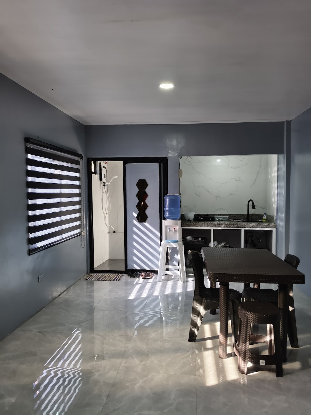 Studio type condo for transient good for 4 persons just two minutes away from Session road and SM Baguio. Complete with appliances such as refrigerator, microwave oven, rice cooker, induction cooker, electric kettle, bread toaster, air fryer, electric fan, television and WIFI. Cooking is allowed.