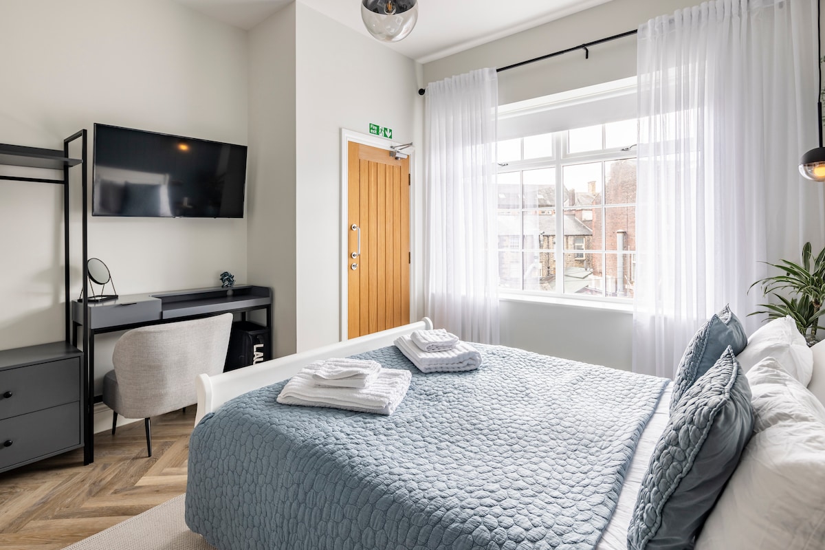 Baza ta din timpul săptămânii chiar lângă Manchester. Acest studio modern oferă tot ce au nevoie călătorii de afaceri și lucrătorii de la distanță: spațiu de lucru dedicat, internet rapid prin fibră optică, stație de cafea și parcare în afara străzii. Situat la câteva minute de M60/M66, vei avea acces rapid la centrul orașului Manchester, la parcurile de afaceri din apropiere și la dotările locale. Liniștit, elegant și complet autonom — ideal pentru contractanți, consultanți sau oricine are nevoie de o ședere confortabilă în mijlocul săptămânii. Reduceri disponibile pentru șederi mai lungi.”